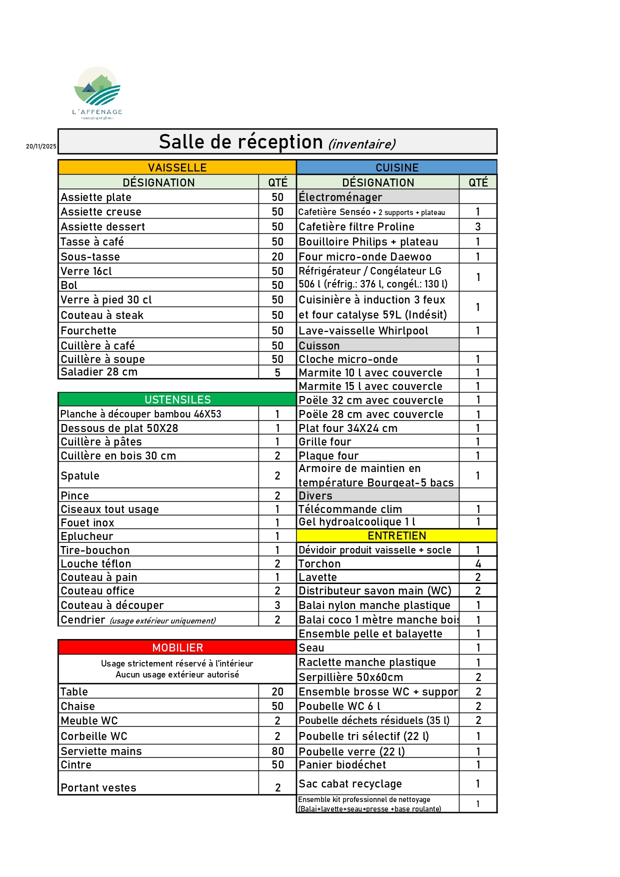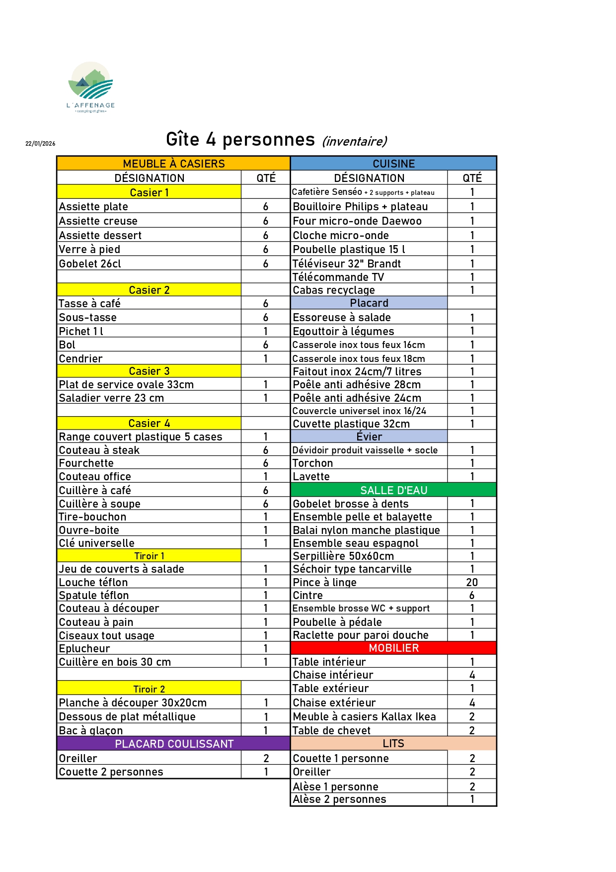 Inventaire chalet 6 personnes